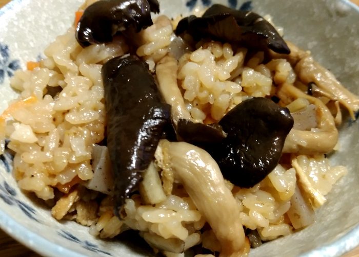 手料理らしい料理を作るのも久々で、何をするか迷ったののですが、何でもかんでも野菜が高い昨今、なぜか霜降りひらたけがイオンで1パック98円と安かったので、晩ごはんは炊き込みご飯にしてみました。