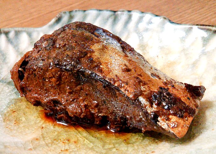普通のサバ煮は、身の脂を残すようにサッと煮付けるのが定石だと思うのですが、こちらは何と3日間もかけて真っ黒になるまで煮込まれているのです。