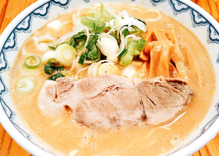 たっぷりのメンマ、分厚い肩ロースの煮豚も、スープより存在感が控えめで脇役に徹してます。そこに、ざく切りにした白ネギの辛味と、おろしニンニクの香り。実に計算されつくしたバランスだと思います。