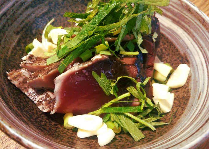 いや、天然のカツオを一本釣りして藁焼きにしたタタキは、一切臭みがなくてモッチリ、これはさすがに旨いですな~。