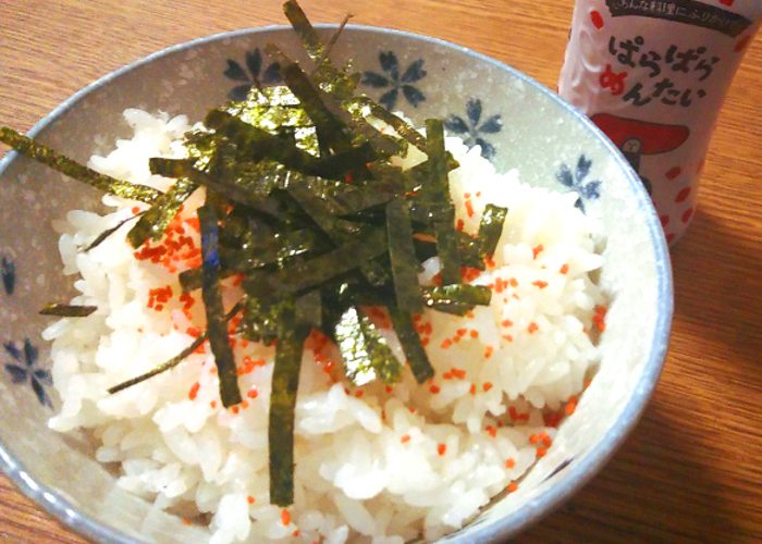 するとどうでしょう、ぱらぱらめんたいがかかったご飯を頬張ると、口の中は本当に明太子ご飯を食べているようではありませんか!