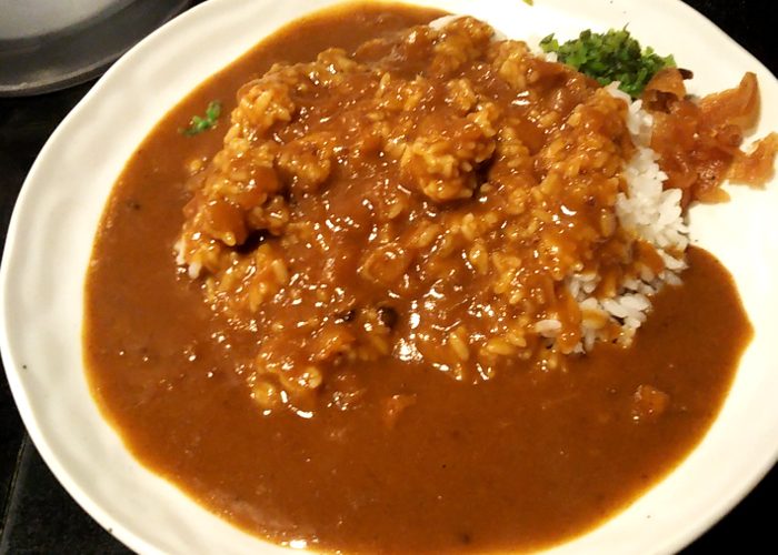 一口食べるとまずガツンと甘さが来ますが、フルーツを濃縮したような甘みで不自然さはありません。それに甘みの中にしっかり肉の旨味があって、王道の欧風カレーを食べている満足感があります。