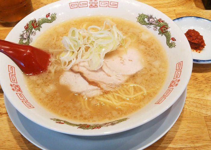 見た目は京都風の背脂醤油ラーメンという感じだけど、スープは鶏が入っていて醤油ではなく塩ダレ使用、まったりと柔らかい旨味に背脂のコクがプラスされ、白ネギのあっさりした風味が調和しています。