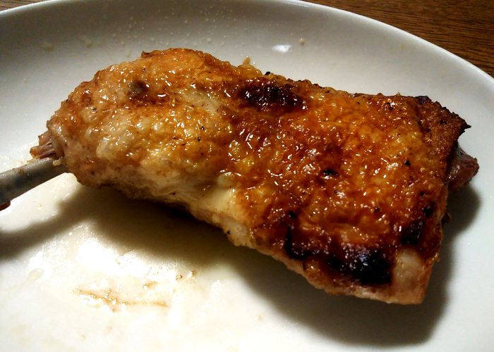 パリパリに香ばしく焼かれた鶏皮から溢れ出た脂で、身の方もじっくり火を通された骨付鳥。