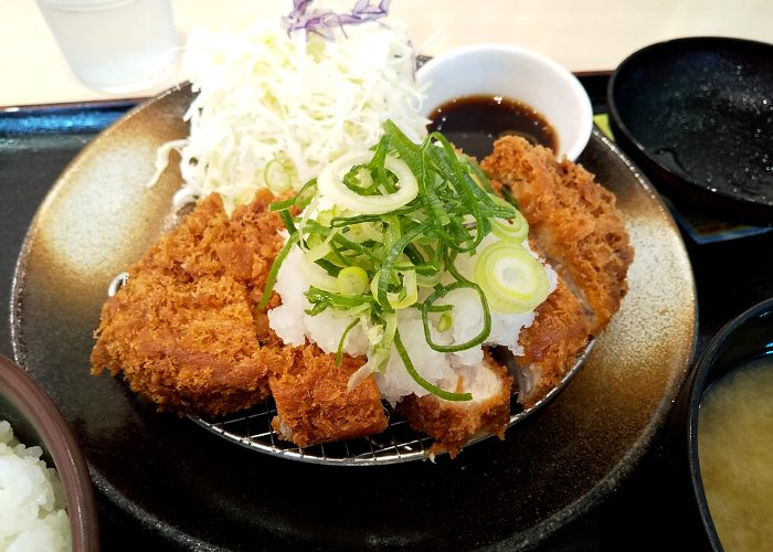 優待券は、ダブル定食以外ならどんな金額の定食でもOKなので、盛り合わせ以外で最も高価な「おろし厚切りロースカツ定食」(800円)を頼んでみました。