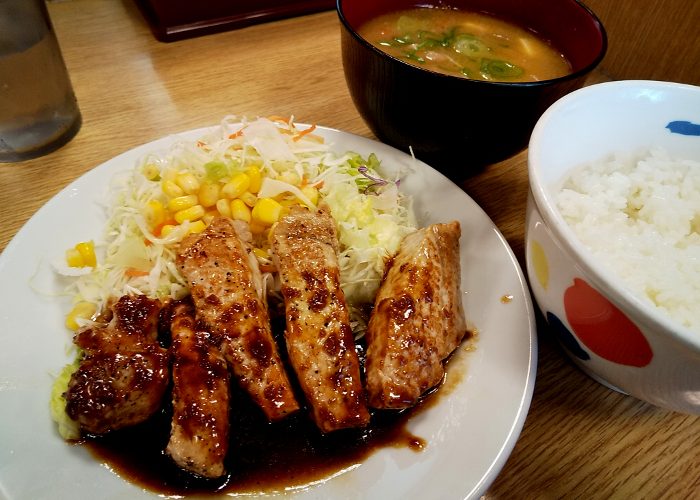 今回は、厚切り豚テキ定食豚汁セット(830円)! ご飯は大盛りも可能ですが、普通盛りにしておきました。