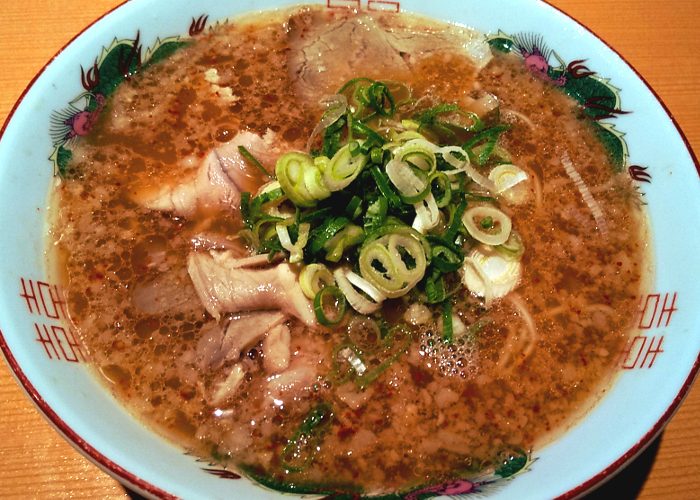 麺は京都らしい柔らかめの中細ストレート。チャーシューはモモ肉っぽい薄切りであっさりしてますが肉質は良好。そしてシャキシャキの九条ネギ。