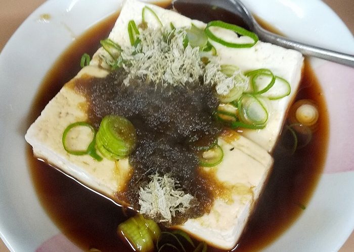 そして湯豆腐が出来上がり。豆腐がちゃんと美味しくてポン酢もしっかり味なので、良いアテになります。