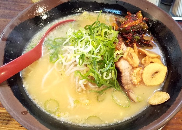 スープはライト豚骨で麺はあまりコシが無い細麺ですが、チャーシューはトロトロのバラ肉がたっぷり入っていて、何よりニンニクチップ、ニラキムチ、刻みニンニクが入れ放題なのが嬉しいですな。
