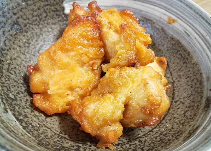 以前に、鶏肉のミンチカツを買ったことがあったので、今回はから揚げにしてみました。から揚げも、もも肉(100g 230円)、胸肉(150円)、そして胸肉の甘から揚げ(160円)と3つもあり、今回は胸肉のノーマルと甘いほうで食べ比べてみる事に。