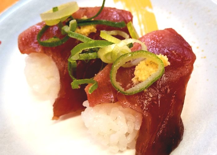 限定メニューのトロカツオ。ネタは薄いですが香りが立っていて旨し。