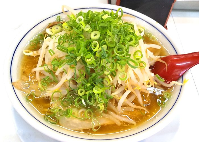 さて実物ですが、大振りなどんぶりに麺がぎっしり、ネギともやしもたっぷりでかなりのボリューム、麺量は150gぐらいはありそうです。