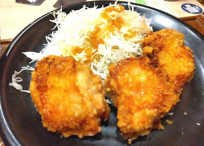 食べてみると、口の中に刺さるんじゃないかというぐらいに衣がカリカリのクリスピーで、肉汁がしっかり閉じ込められてジューシー。肉質も悪くなく、ファミレスとしては十分なクォリティだと思いますね。