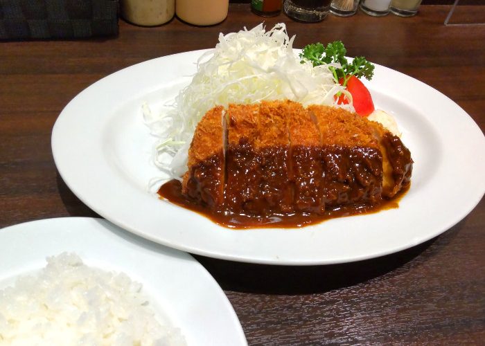 ビフカツとオムライスが有名な店ですが、オムライスという気分ではなかったのと、あまりレアで厚いビフカツは好みでは無いので、チキンカツ(1100円)にしてみました。単品にはサラダとライスが付いていて、スープはありません。