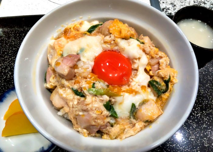 親子丼は、プリプリの鶏肉をふわふわの卵と青ネギを薄味の出汁でとじ、最後に卵の黄身を載せた、まさしく京都スタイルの親子丼。