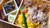 少し甘めに炊かれたご飯、甘辛く煮込まれた鶏肉のそぼろは肉味しっかり。ご飯が少しボソボソなのが玉に瑕ですが、折尾駅のかしわめしに迫るクォリティ。