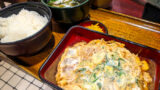 丼つゆは甘めのつゆだくタイプで、かまぼこ、しいたけの甘煮、三つ葉、針海苔とオーソドックスな内容。ただし吸い物は、インスタントっぽくてケミカルで美味しくないです。