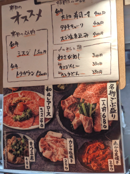 昨年リニューアルした、新京橋商店街にある焼肉店。店外にあるメニューを見て、なかなかリーズナブルなお値段だったので一度立ち寄ってみる事にしました。