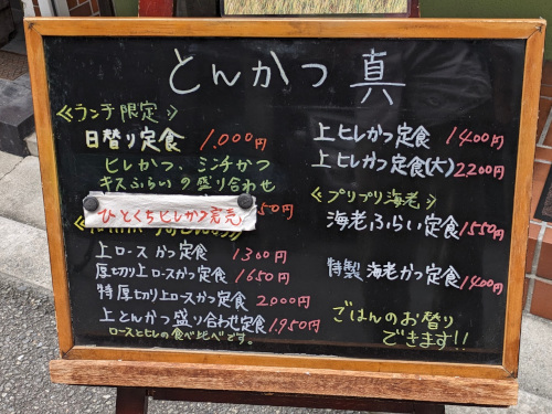 メニューにはロースやヒレなどの定食が並んでいますが、数量限定の日替わり定食(1000円)がまだ残っているとの事なので、それをオーダーしました。