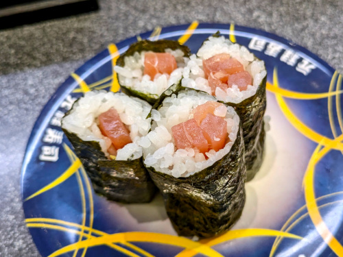毎度の鉄火巻。元禄寿司のマグロはクォリティが安定しています。