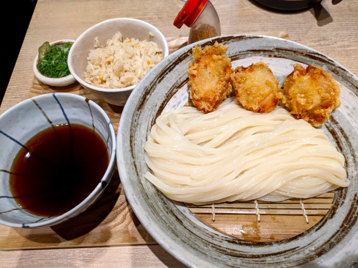 前回はぶっかけうどんを頼んだので、今回は「とり唐天ざるうどんセット」(1000円)にしてみました。