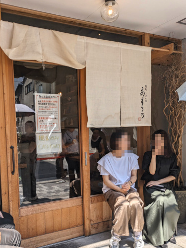 平日の13時前というピークを外した時間でも、10人以上の外待ちが出来る人気ぶり。店外の待ち席には直射日光が当たるので、日傘が準備されています。