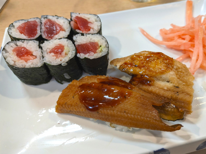 450円の煮込みあなごと鉄火巻。アナゴはフワフワで溶けるよう、マグロも安定した美味しさ。