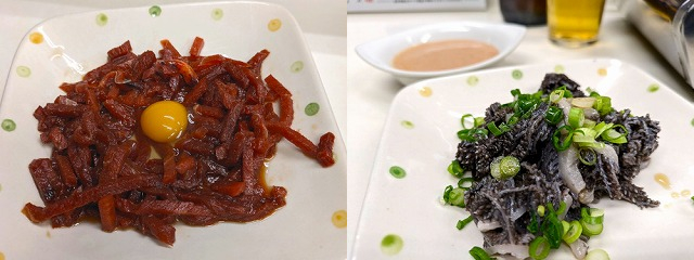 馬肉のサクラユッケは野菜が一切入らず、肉オンリーで650円なのにビックリ。馬肉ってネットで買ってもメチャクチャな値段しますからね~。マヨネーズ入りのチョジャンがユニークな生センマイはクォリティ的にはまずまずかな。