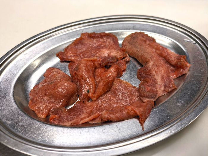 今どき1100円と激安の塩タンは、手切りで厚さが不揃い、肉質はやや固めだけどジューシーで抜群に美味しい。