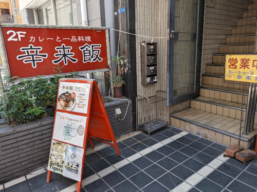この日は別の店に行く予定だったのですが、ふと「辛来飯」という新しい看板が目に付いたので、それにつられて入ってしまいました(笑)。 その看板を見て、辛来飯が近々移転するという話をにわかに思い出しましたが、まさかすぐ西隣のビルだったとはさすがに...