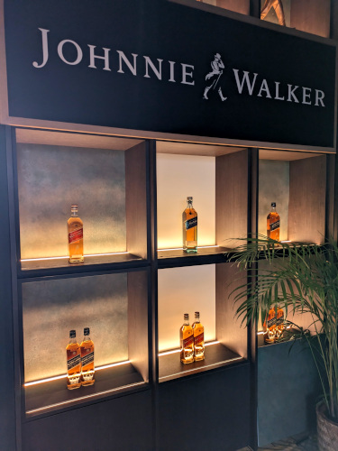 それをリアルに再現しているのが、イギリス館の3階にある「ジョニーウォーカーズバー」。エントランスにはジョニー・ウォーカーのボトルが飾られ、ミラーを使ったオシャレな内装、