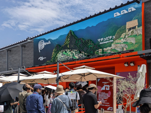 地味な長屋型のタイプBパビリオンながら、試食が充実している事で話題のペルー館。
