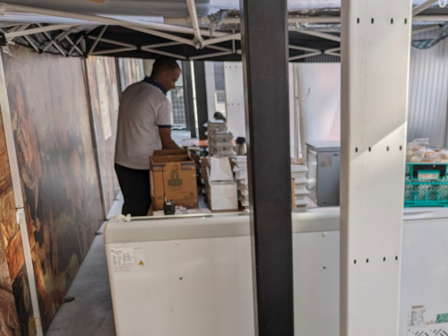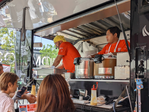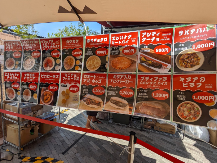 7月末からパビリオンの外にペルー料理のキッチンカーが置かれるようになり、こちらも入館しないと注文できないルールだったのですが、お盆期間は待機行列の規制がかかる状態になっていたせいか、外からキッチンカーのエリアに入れるようになっていました。