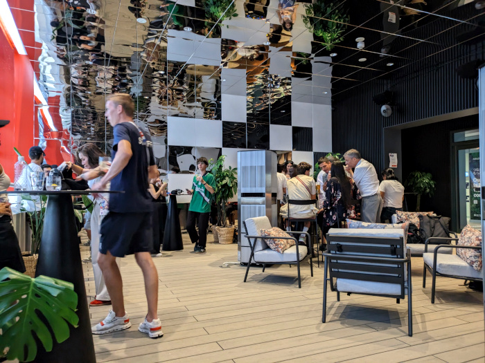 夕方になって、万博に来ている外国人スタッフらが集って酒を飲みながら談笑されている雰囲気は、まさに本場のパブの雰囲気そのままです。