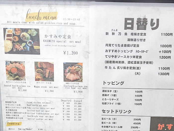 店外のメニューを覗いてみたら、無事「新秋刀魚の塩焼き定食」を発見。値段は1100円で300円(!)も値上がりしていましたが、頭がサンマになっていたので背に腹は代えられません。