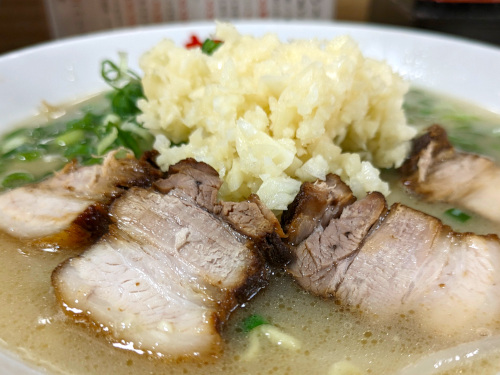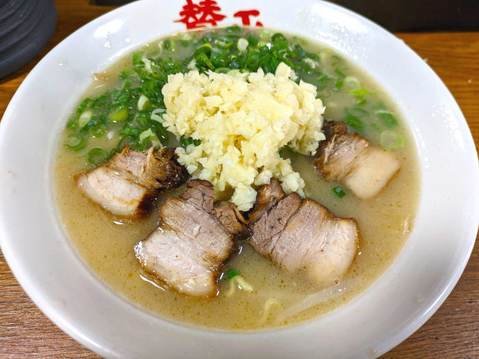 スープは軽く白濁した塩気の効いたライトな豚骨スープ。鶴橋の店よりとろみが少なくて、より正統派の薩摩っ子スタイルという感じがします。