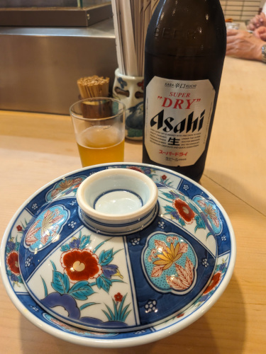 でもまだビールが欲しい気分だったので、まずは瓶ビールと炊合せでスタート。
