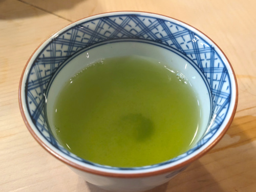 会計時に出される緑茶。普段そんなにお茶を飲む方じゃないのですが、ここのお茶は本当においしい。