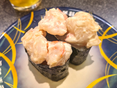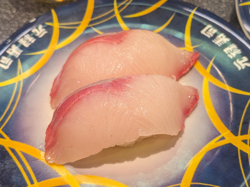 ハマチが美味しそうだったのでついレーンから取ってしまいました。これは脂が乗っていて美味。