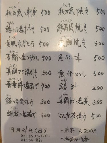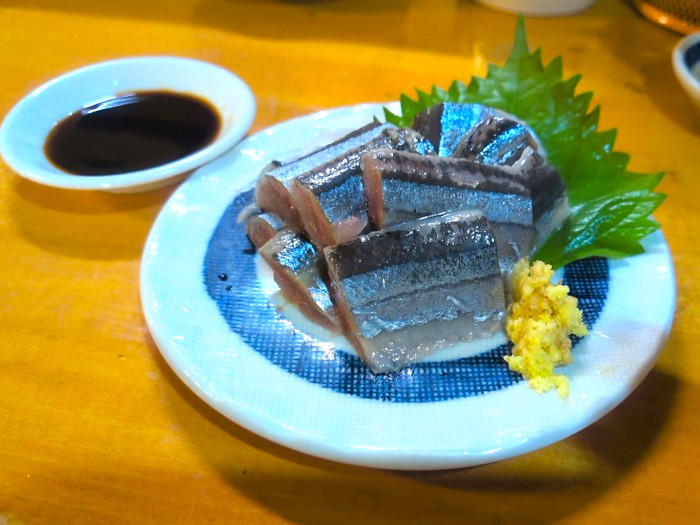 今が旬の、秋刀魚の刺し身(500円)。先日焼き魚で食べた時もそうでしたが、今年の秋刀魚は身が太いけど脂の乗りは穏やかでさっぱりしてますな。