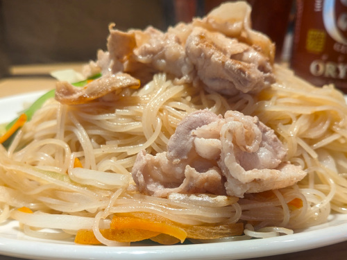 焼ビーフンは、まんまケンミンの焼きビーフンですな。ビーフンはもとからグルテンフリーなんですが、普通の醤油には小麦が使われているので、そこをグルテンフリーに変えたみたいです。