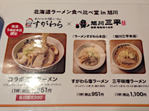 会期の後半は、旭川の「ラーメンすがわら本店」と「旭川三平本店」がコラボでイートインを行うとの事で、久々に札幌ラーメンが食べたくなって行ってみました。