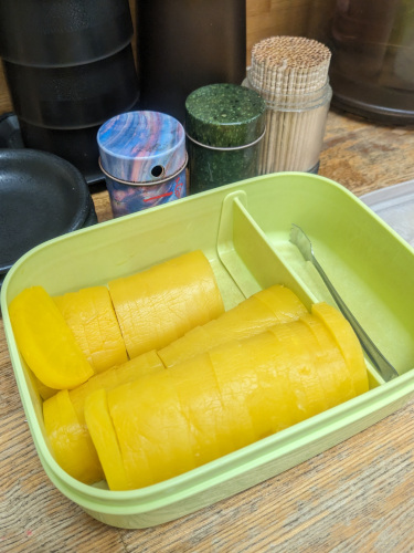 たくあんは取り放題、一味唐辛子と粉山椒も卓上に完備されているのが嬉しいですな!