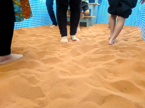 ヨルダンのワディ・ラム砂漠から500kgの砂を持ち込んでの、素足砂漠体験も並び無しで参加できましたよ。