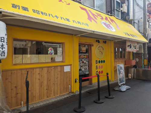 今回初訪問のラーメン屋、ストライク軒さん。以前は天神橋筋沿いに店を構えておられましたが、今年の6月にぷらら天満の北西に移転。もとの場所にはあの本家第一旭がオープンしています。