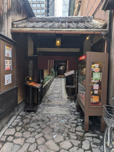 入口は路地になっており、その奥に瀟洒な昭和レトロ建築が待ち構えています。