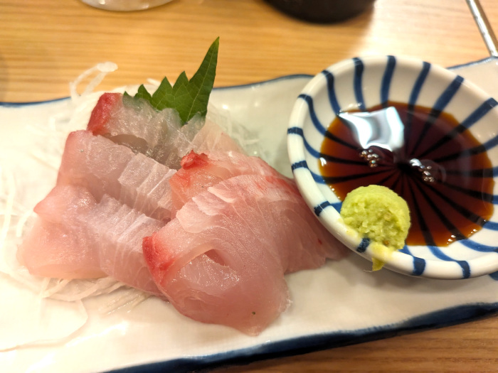 刺し身は、天満市場のすぐ隣とあって、7種類ものバリエーションを誇っています。これはシイラですが、明らかに他の晩杯屋よりも盛りがいいですね!
