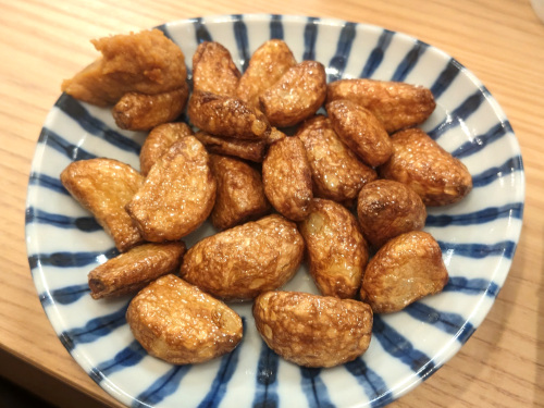 まだそんなに腹が減っていなかったので、ホッピーの中を追加して揚げにんにくで締め。支払いは株主優待カードのポイントで。