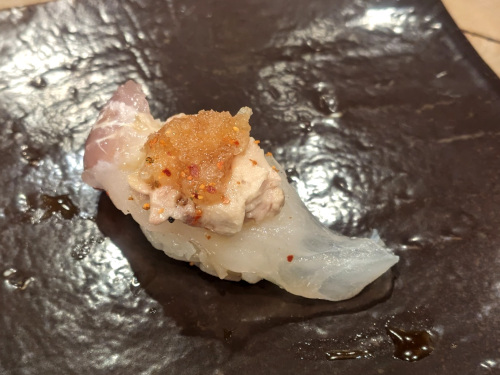 カワハギの肝のせ。上品な肝の風味がたまりません。