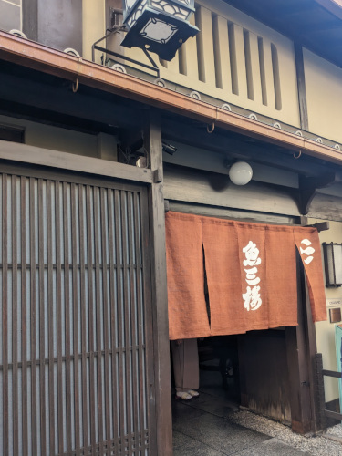 出窓の格子には鳥羽伏見の戦いで受けだ弾痕が残る、創業250年余りを誇る名料亭で京懐石をいただきました。